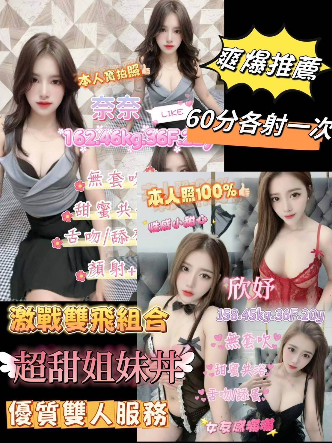 無套吹>小親親>舌吻LG(視口腔衛生而定)>品鮑69>舔蛋舔澤丸>簡易按摩>絲襪誘惑(客自備)>💫 雙飛 可搭 欣妤 💫