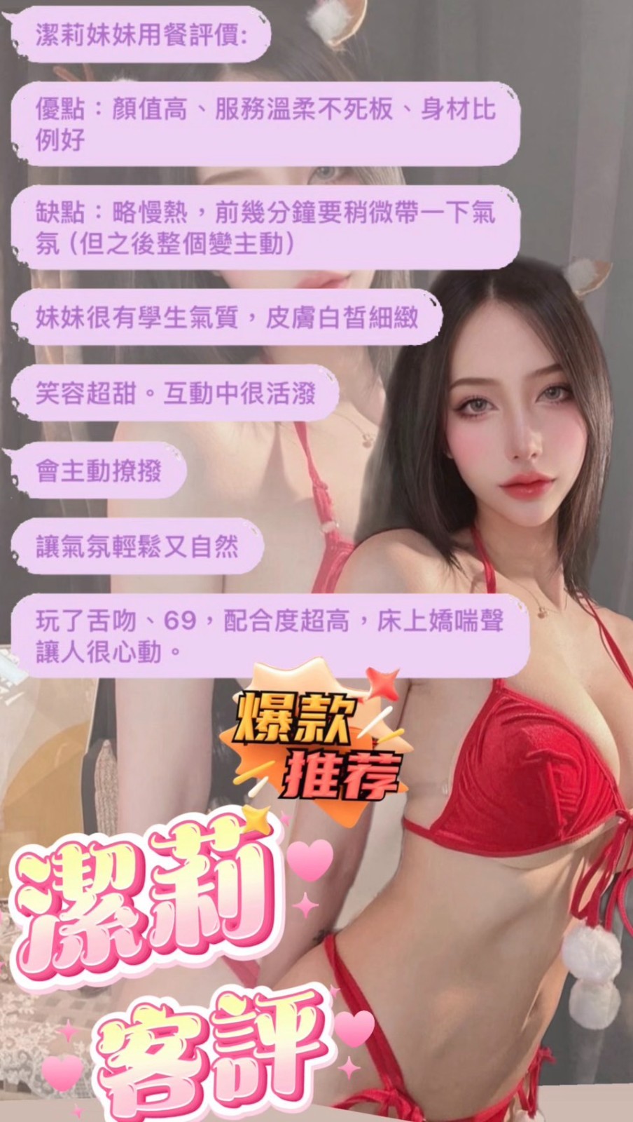 👍項目:無套吹/共浴/親嘴/舌吻/品鮑/69/舔蛋/奶泡/水中蕭/胸推/屁推/按摩