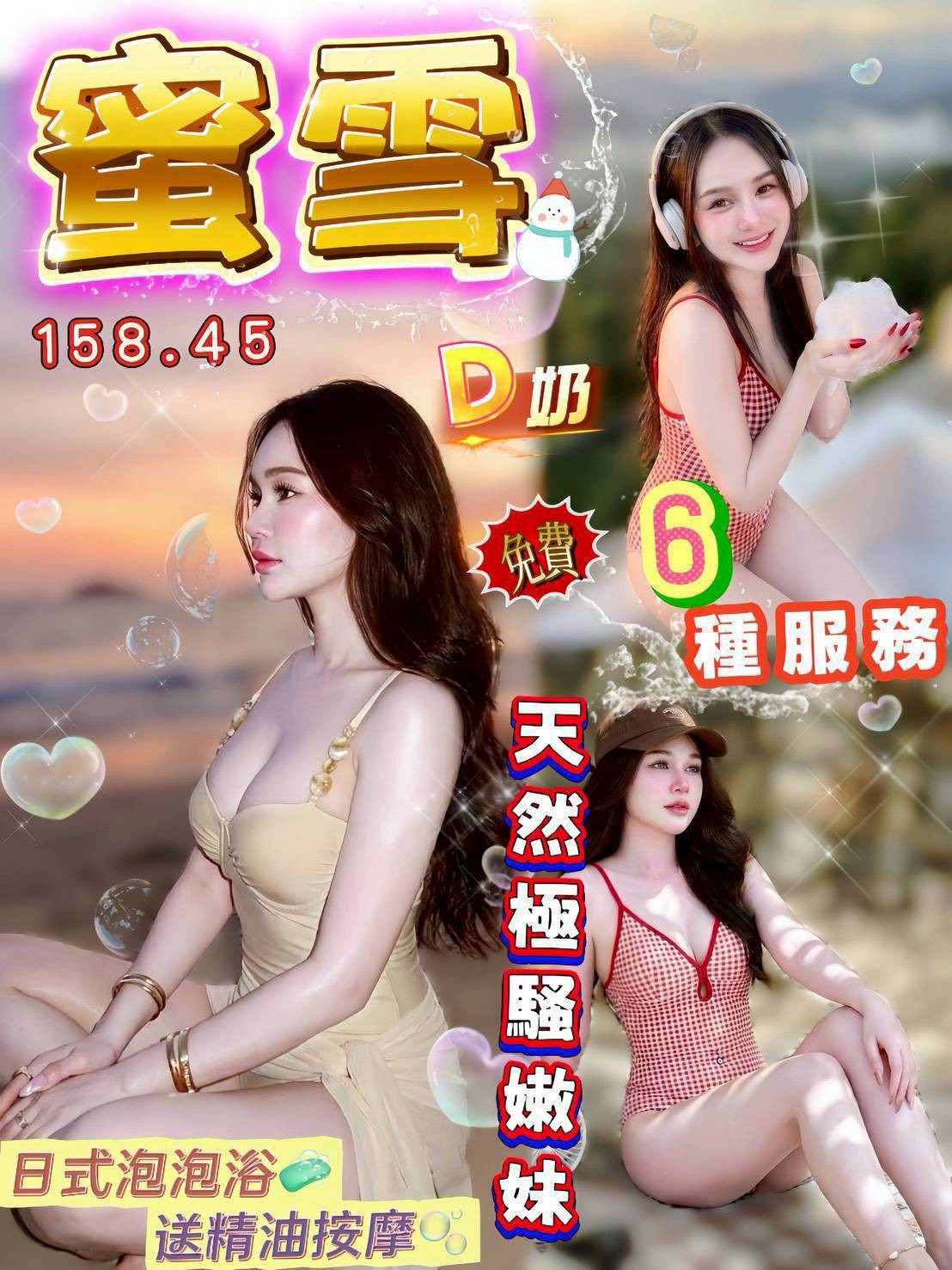 戴套做/無套吹/按摩/共浴/胸推/奶炮/屁推/漫游過水/舌吻