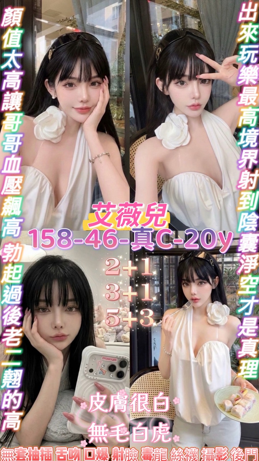 無套吹/戴套做/共浴/親嘴/舌吻衛生/品鮑/69/舔蛋/深喉嚨/水中蕭/按摩/奶砲/胸推/奶悶臉